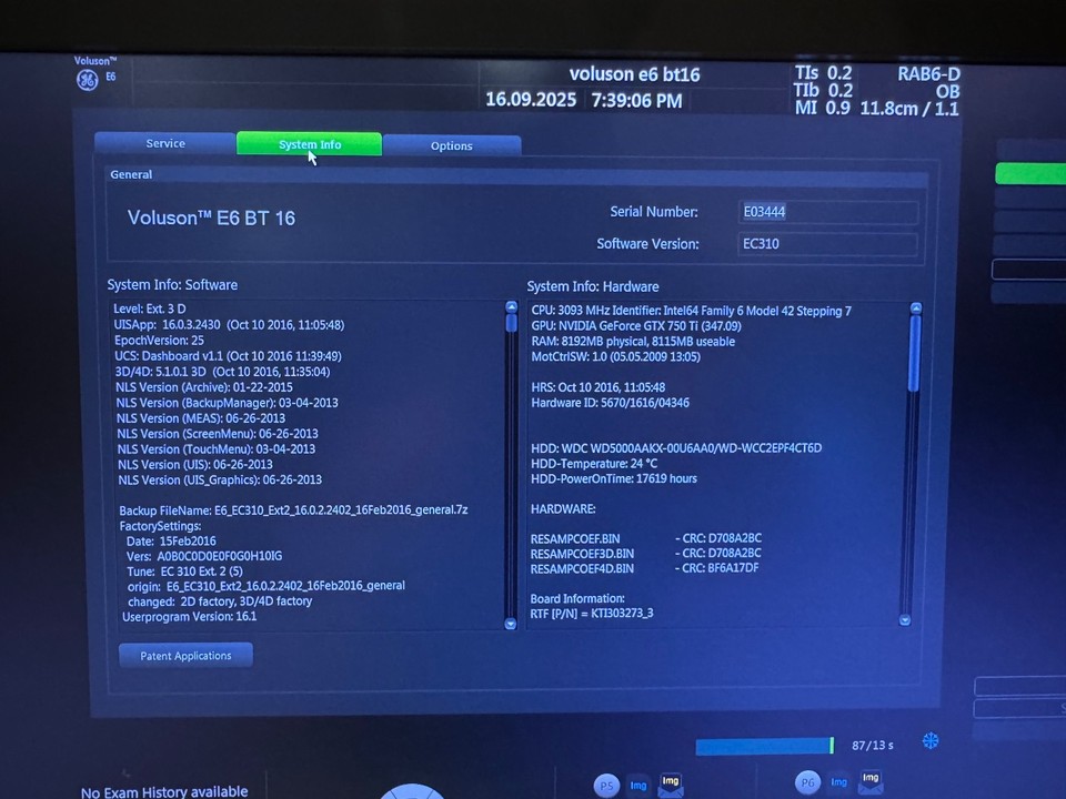 GE VOLUSON ULTRASOUND E6 BT16 2016 3 PROBES HDLIVE